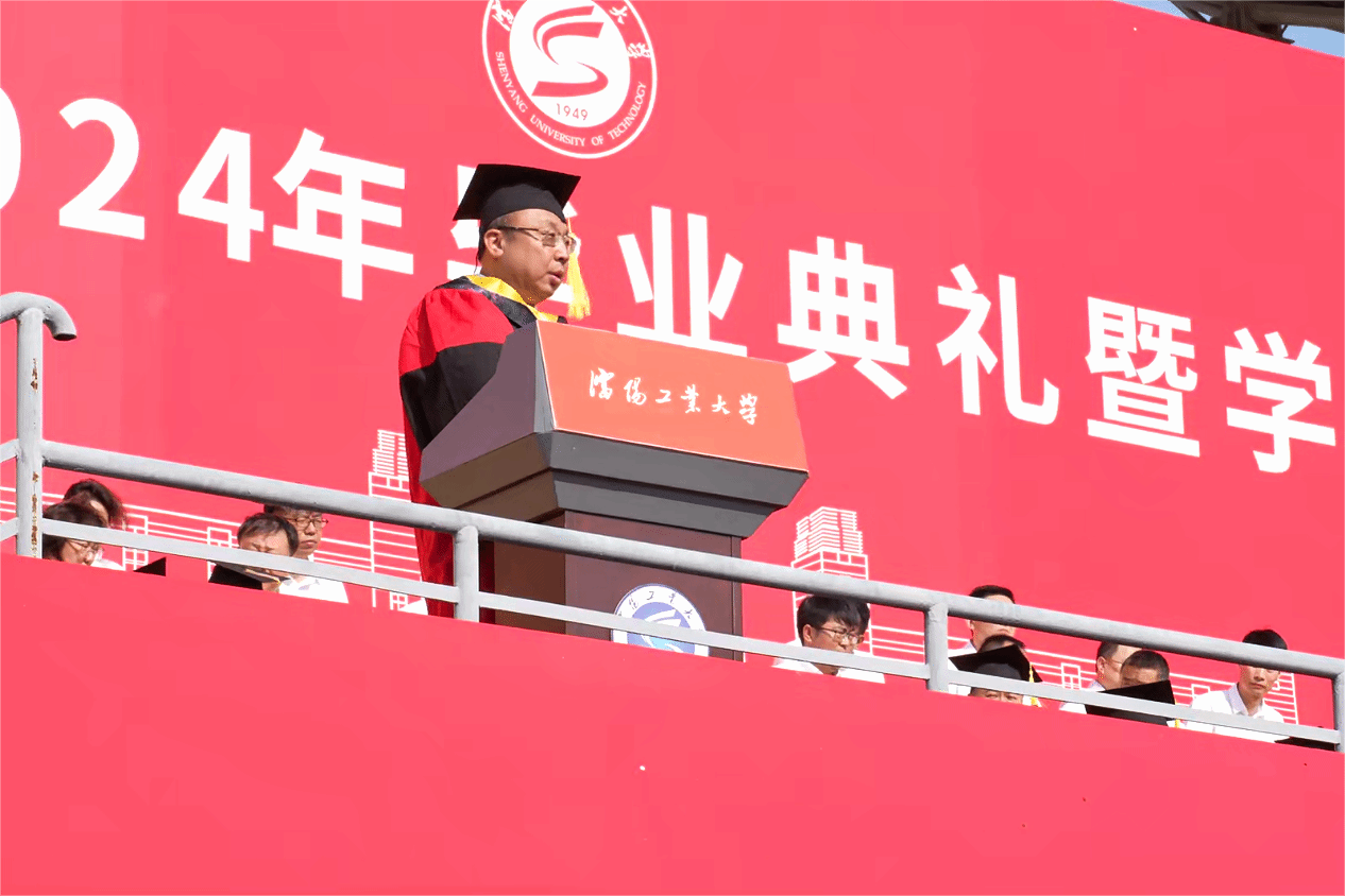 贾玉明深情回顾了毕业生们在校期间青春记忆中的闪耀瞬间,盘点了全校师生共同经历的一场场重要考验,细数了学校在“双一流”建设中取得的一项项重大发展成就。他表示,过去几年,广大学子以奋发向上的精神面貌与学校携手逐梦,共同进步,亲历并见证了学校发展进程中的重要历史时刻,学校开拓进取,创新发展,综合排名稳步提升,社会影响力不断扩大,向同学们展示了一个更显颜值、更具底蕴、更有温度、更富实力的沈工大。